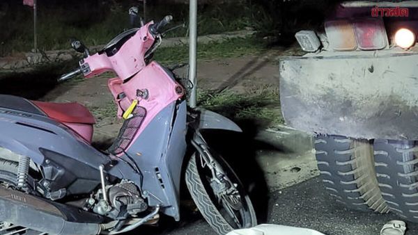 สาว27 ขี่จยย. พุ่งเสยท้ายรถบรรทุกยางมะตอย จอดรอทำถนน เสียชีวิตสลด