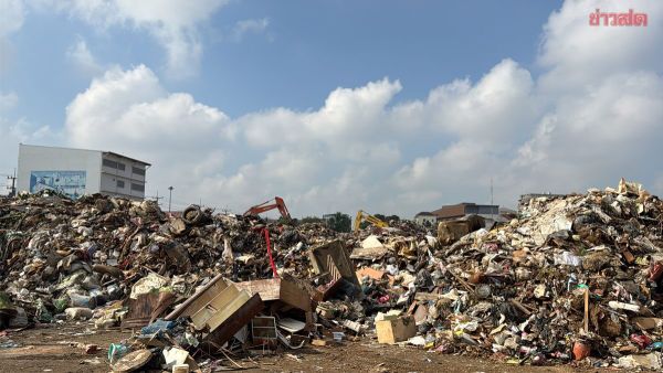 หาดใหญ่วิกฤต ขยะกองสูงเท่าภูเขา หลังน้ำลด ใช้แยกสะพานดำเป็นจุดศูนย์รวม ส่งกลิ่นเหม็น