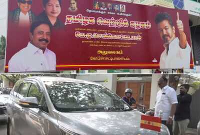 எம்.ஜி.ஆர்., ஜெயலலிதாவுடன் விஜய் படம்... செங்கோட்டையன் அலுவலக பேனர் மாற்றம்... காரிலும் தவெக கொடி!